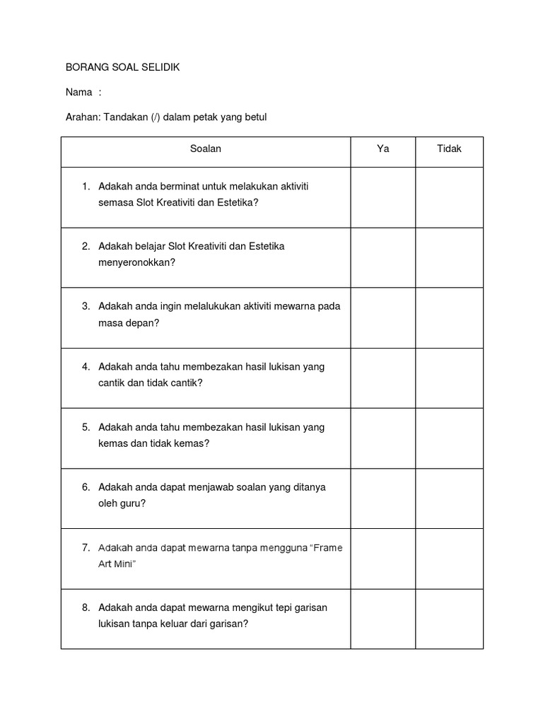 Simpan Simpan BORANG SOAL SELIDIK Untuk Nanti. Borang Soal Selidik Gaya Hidup Sihat Politeknik. Borang soal selidik untuk warga penduduk kampung ayer papan tajuk kajian.